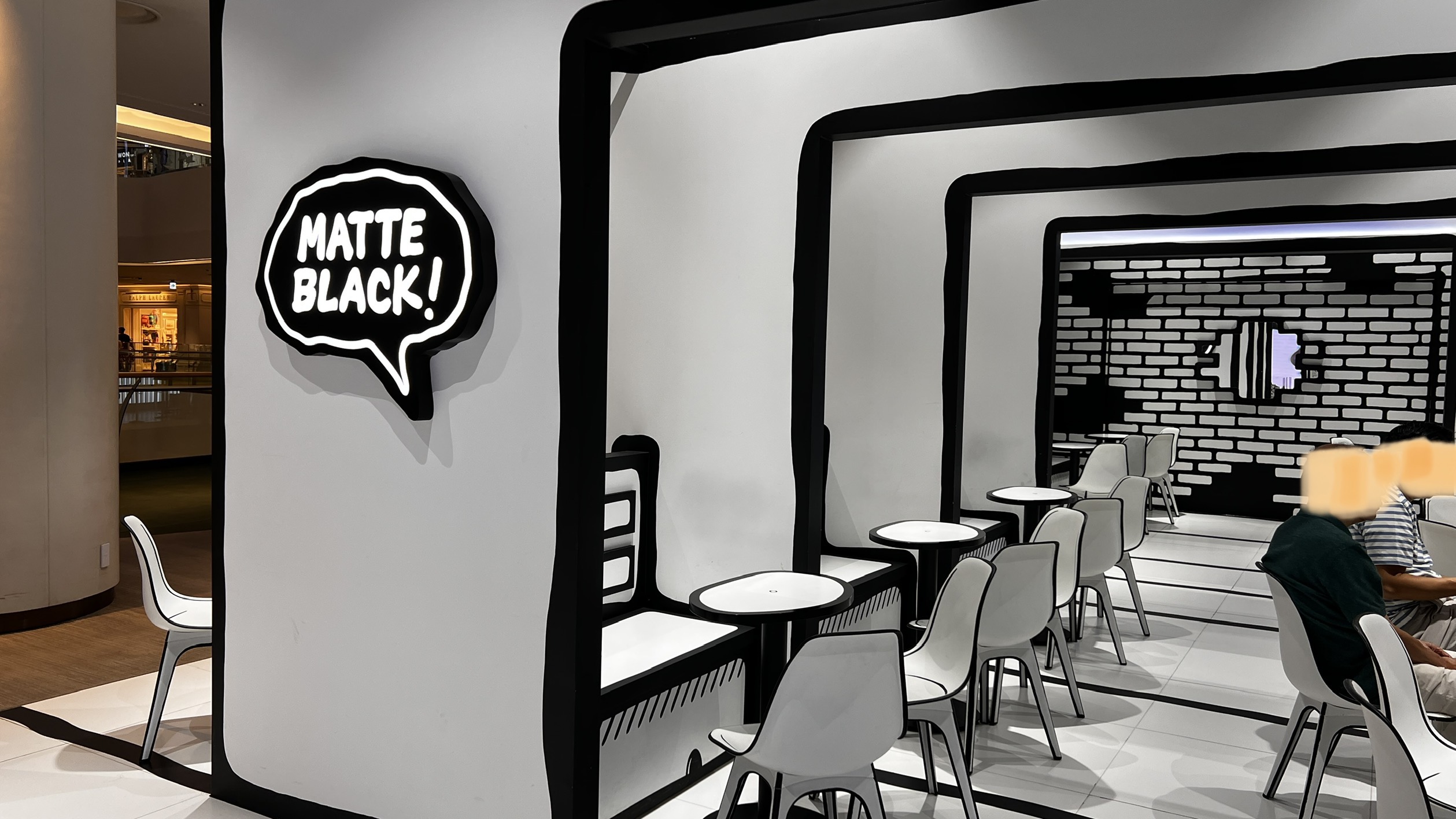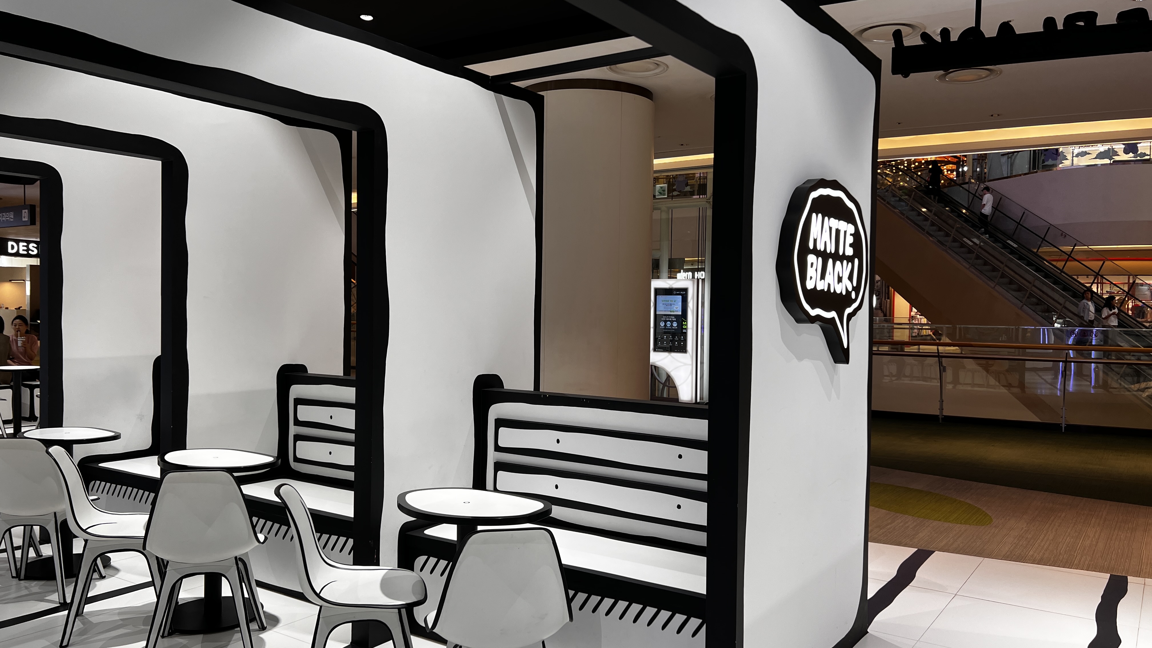 궁금해서 검색해 보니, "Matte black" 이라는 착시 현상을 이용한 인테리어의 카페였다.